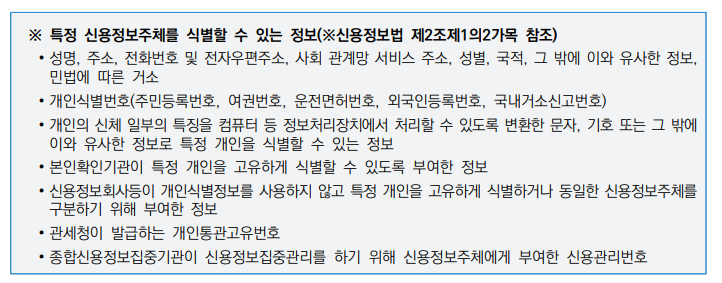 - 신용정보법 시행령 제14조(수집된 신용정보 처리의 위탁) 제4항제1호, 제18조의6 (본인신용정보관리회사의 행위규칙 등) 제7항제4호