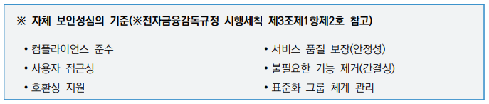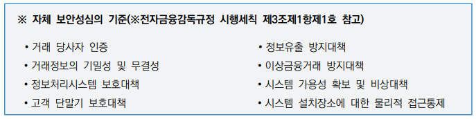 - 전자금융감독규정 시행세칙 제3조(자체 보안성심의 기준 등)호