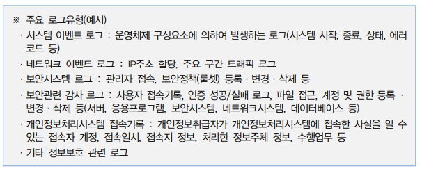 - 보존이 필요한 로그유형 및 대상시스템 식별
